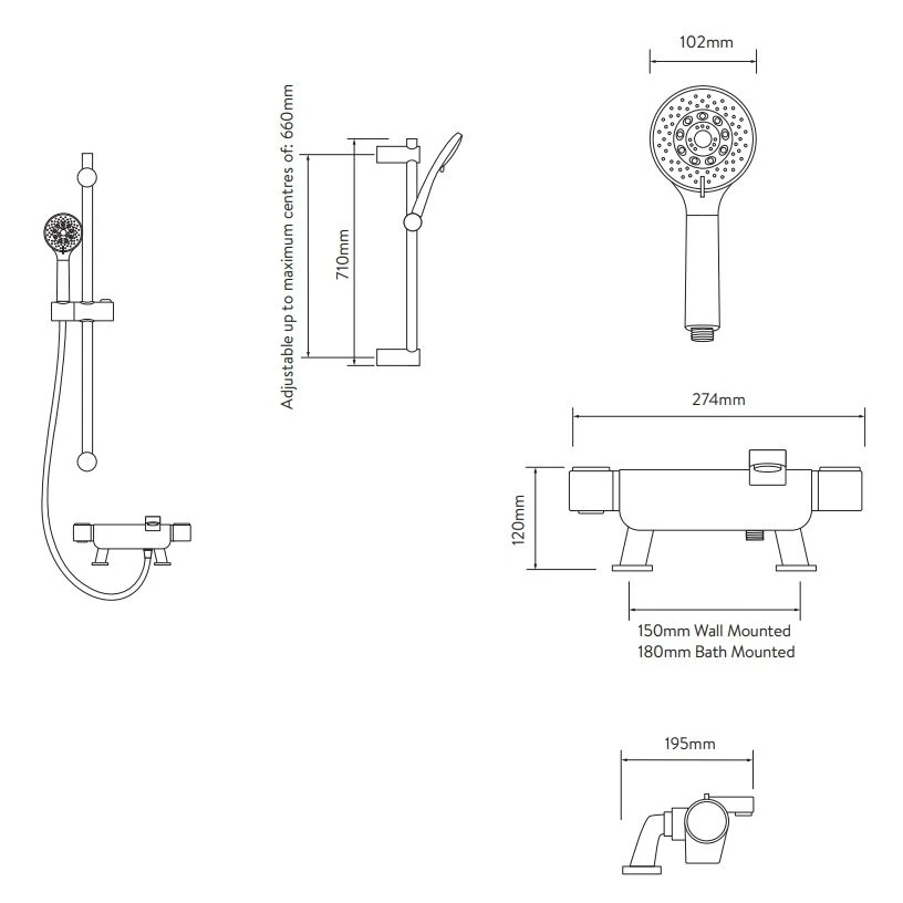 Aqualisa Midas 110 Thermo Shower Column & Adjustable Head Chrome