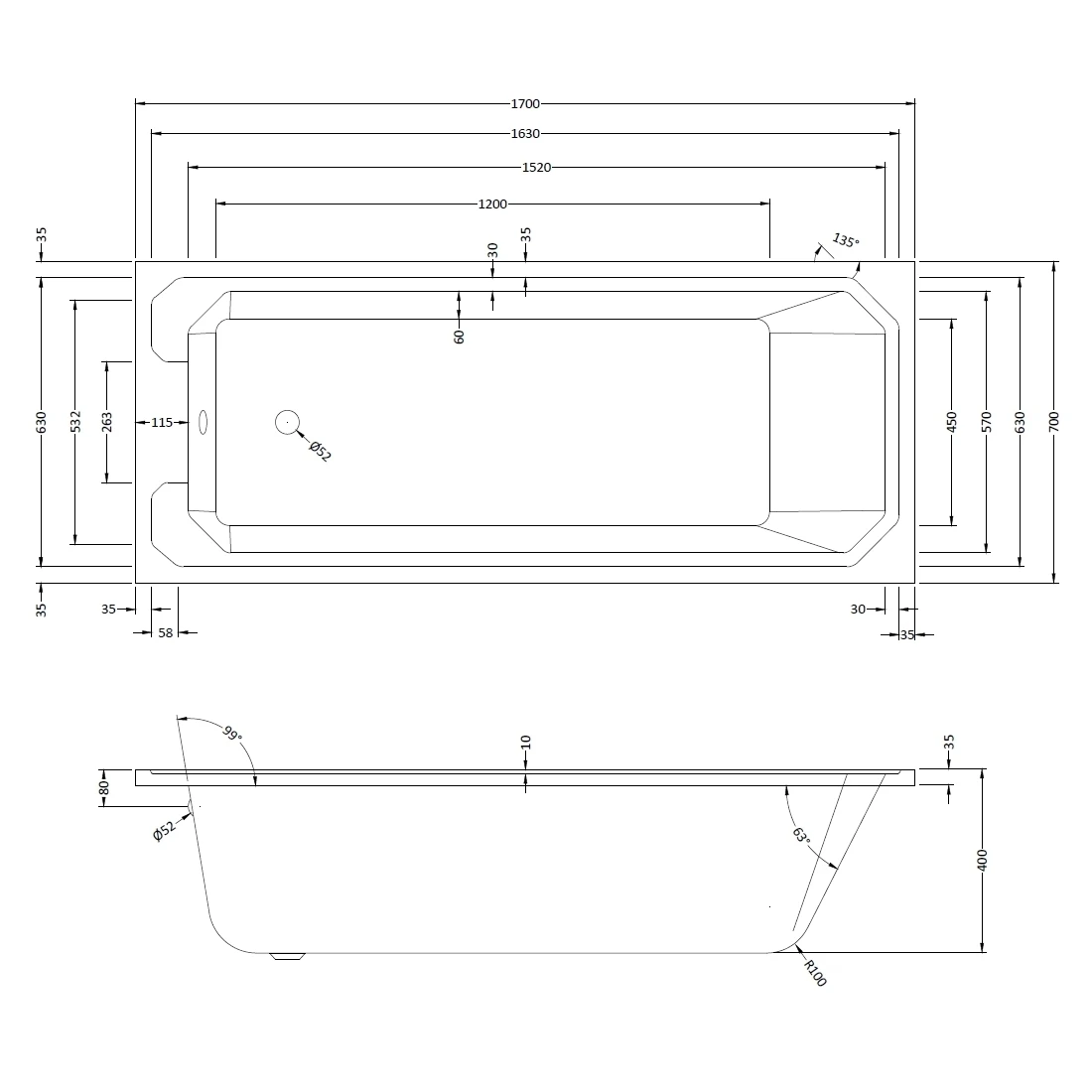Bayswater Bathurst 1700mm x 700mm Single Ended Bath