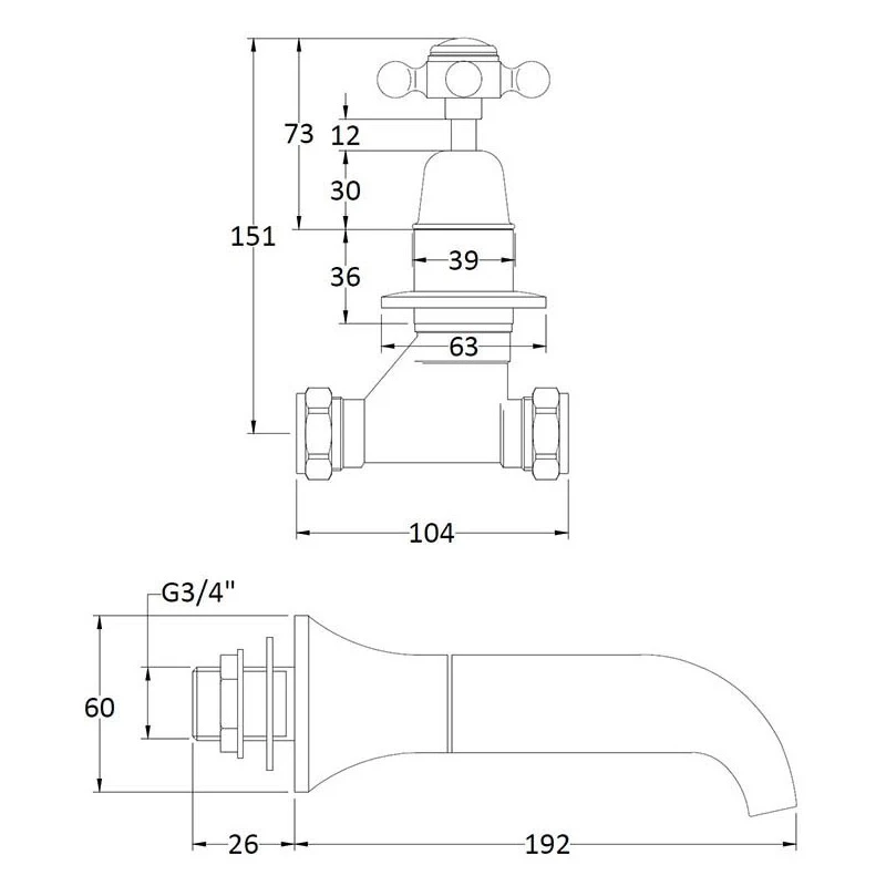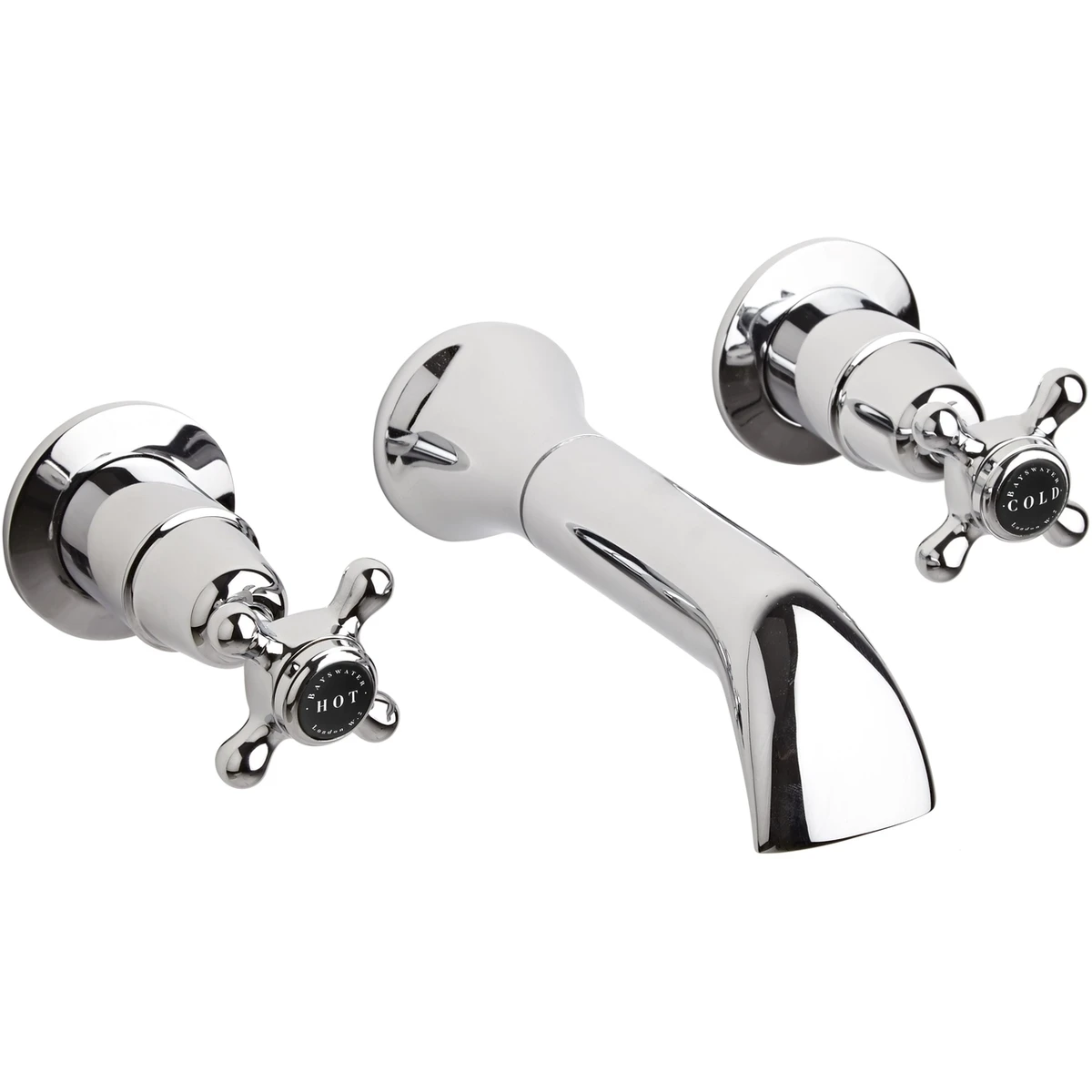 Bayswater Black 3 Tap Hole Wall Bath Filler with Crosshead & Dome Collar