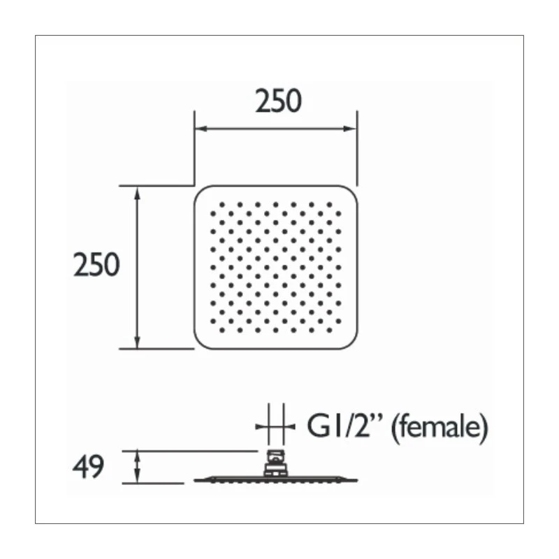 • Stainless Steel Slimline 250mm Square Fixed Head