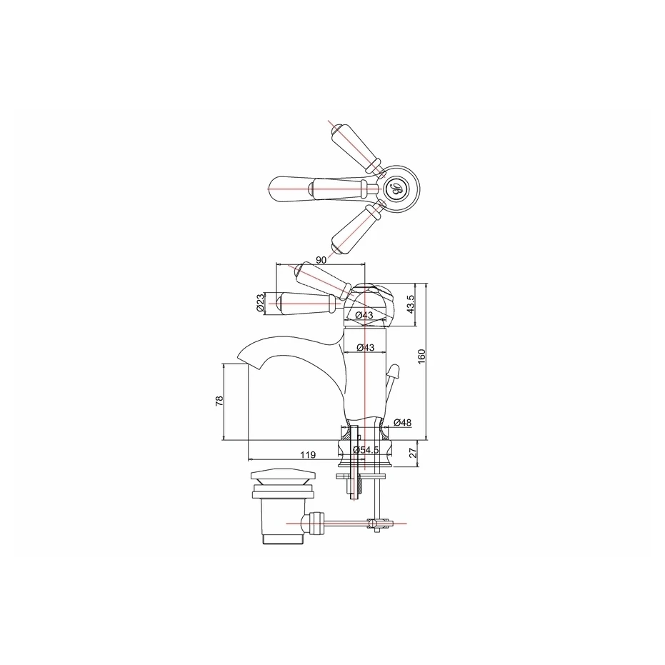 Consists of 1 x Chelsea curved mono basin mixer tap with pop up waste (CH22) and 1 x Regent small single tap base (T4B)