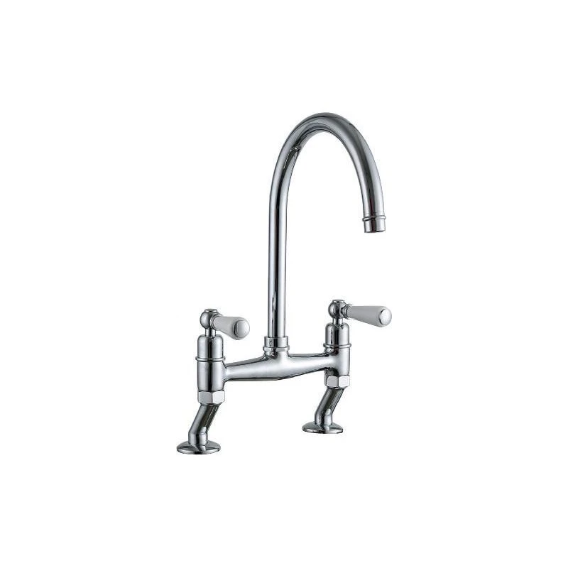 Dephini twin lever bridge mixer with C swivel spout, Chrome