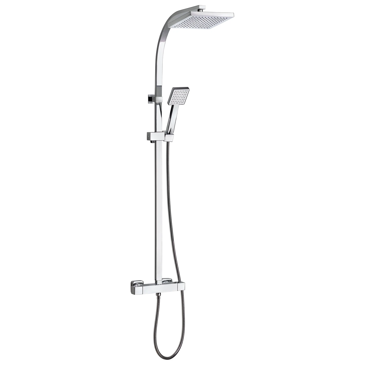 Aqua Flo thermostatic shower column with diverter and square 200mm shower head
