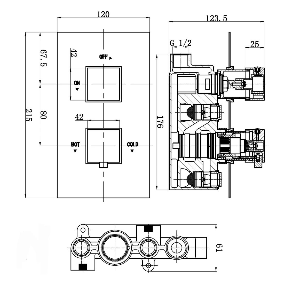 Cube twin concealed 2-way thermostatic shower valve with diverter