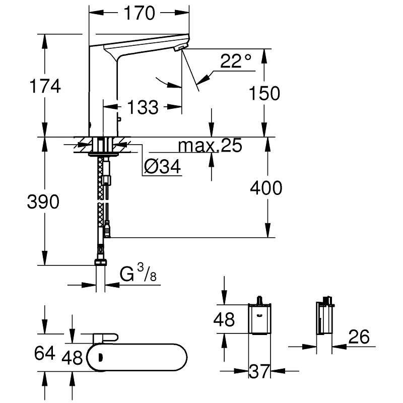 Eurosmart Cosmopolitan E Infra-red electronic basin mixer 1/2″ L-Size with mixing device and adjustable temperature limiter 36422 Chrome