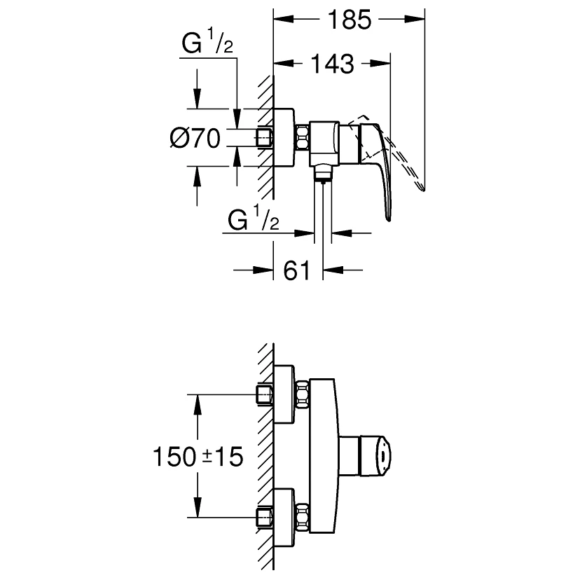 This single-lever shower mixer is designed to be wall-mounted, with a solid metal lever handle for tactile operation. The Grohe SilkMove ceramic cartridge delivers precise volume and temperature control year after year. An adjustable flow rate limiter reduces water consumption, while a temperature limiter saves energy. The shower outlet has an integrated non-return valve that prevents backflow of waste water into the water supply. Finished in the dazzling but hard-wearing Grohe StarLight chrome finish, this bathroom mixer will stay looking pristine for years to come.
