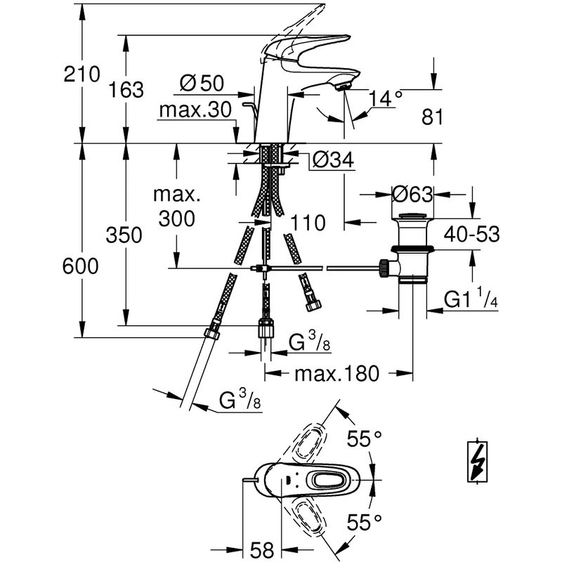 Grohe Eurostyle single-lever basin mixer – water-saving with pop-up waste for low pressure systems