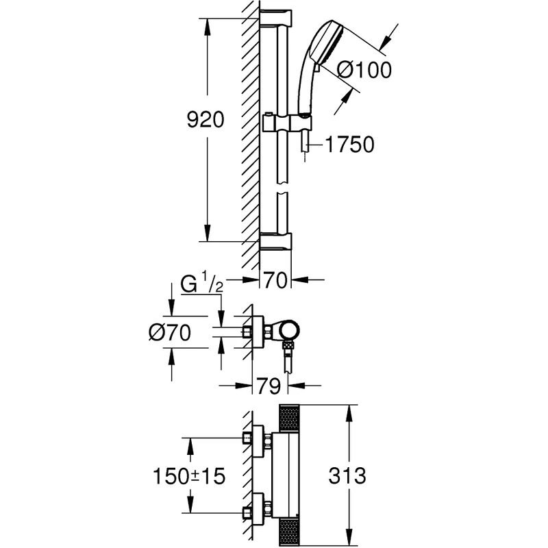 Consisting of Grohtherm 1000 Performance thermostatic shower mixer 1/2″ (34776 000)