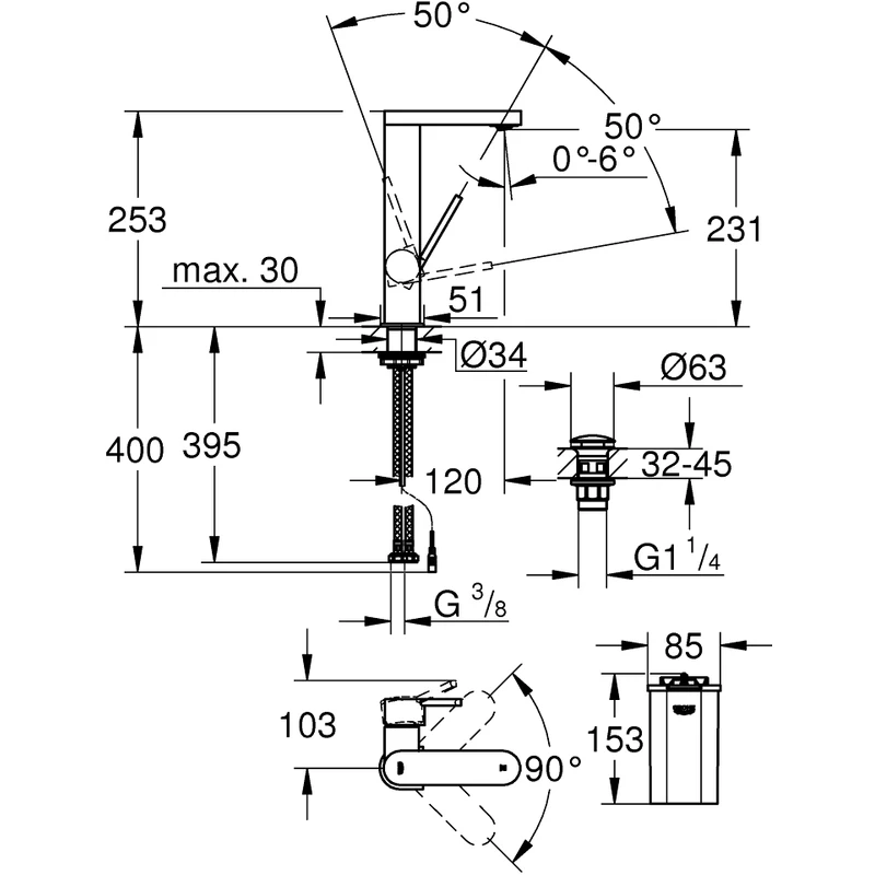 The upper surface of the spout in chic white acrylic hosts an LED temperature display, which shows the exact water temperature as it flows. The tap also employs infra-red sensors to switch smoothly between a sustainable standard spray (5.7l/min) and even greater water-saving with the Spray function (4l/min). Just wave your hand in front of the lit icon on the spout to activate. Made in Germany, this is a large size basin mixer for single hole installation. The large size offers the space for a more user-friendly, comfortable experience. It has a Grohe SilkMove ceramic cartridge, offering smooth, precise control for the life of the tap, operated via the tactile solid metal lever handle. The swivel spout with easy docking system turns through 90° for added ease of use, while an integrated Grohe AquaGuide lets you adjust the spray angle of the spout with ease and precision. The SpeedClean aerator can be wiped free of limescale with just your finger. The tap incorporates a push-open waste set. Finished in the long-lasting Grohe StarLight chrome, this tap combines durability with dazzling good looks.