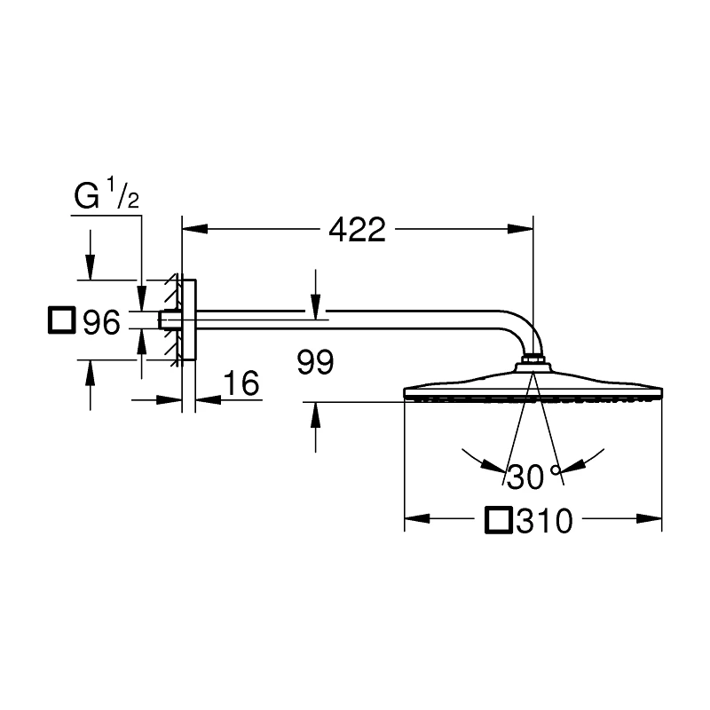 Add the dynamic lines of Cubism to your modern bathroom with the Grohe Rainshower 310 Mono Cube head shower set. Step under a large, square shower head that gives great coverage, into the enveloping, gentle feel of Grohe’s PureRain spray. The 310mm shower head is designed to be wall-mounted on a 422mm arm. This shower lets you enjoy an even flow from every nozzle thanks to Grohe DreamSpray technology. And the SpeedClean nozzle designs means you can brush them free of limescale with just a wipe of your finger. Hot water is directed away from the surface of the shower head via the Inner WaterGuide, extending the life of the sparkling but durable Grohe StarLight chrome finish that will keep its good looks for years to come.