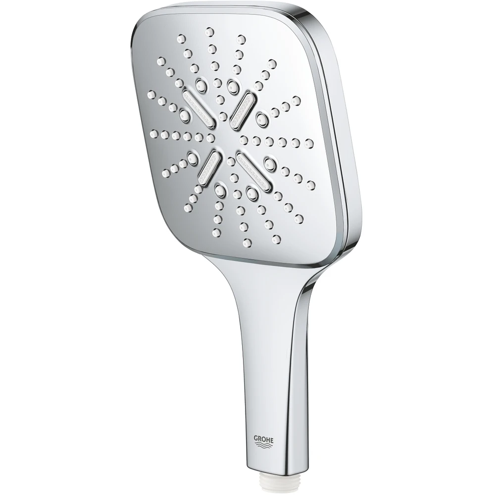 The Grohe Rainshower 130 SmartActive Cube hand shower attaches to all standard hoses in seconds to deliver premium performance. Made in Germany, it is packed with innovative technology and is a joy to use. Grohe SmartTip – an ergonomic controller on the rear of the handle – gives you fingertip control of the spray pattern: pulsating Grohe ActiveMassage spray, which delivers a whole new level of revitalising massage power, invigorating Jet Spray and Rain Spray – as gentle as summer rain. And thanks to Grohe DreamSpray, the flow from every nozzle is perfectly balanced for maximum satisfaction, and the SpeedClean anti-lime nozzles are extra easy to clean too. It also has Grohe EcoJoy, which limits water flow to 1.75 gpm but also delivers pure indulgence, and with a durable Grohe StarLight chrome finish it will sparkle for years. The Inner WaterGuide prevents the surface from getting too hot, protecting both your skin and the chrome finish. Plus, the backflow preventer ensures that no waste water gets into your clean water supply.
