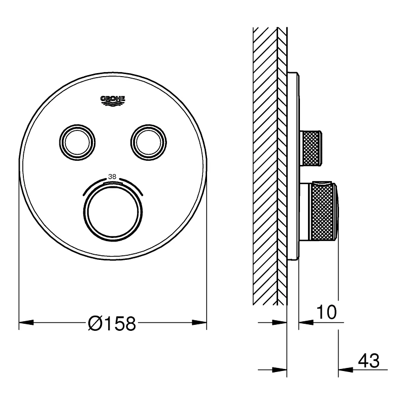 Grohe SafeStop safety button at 38°C