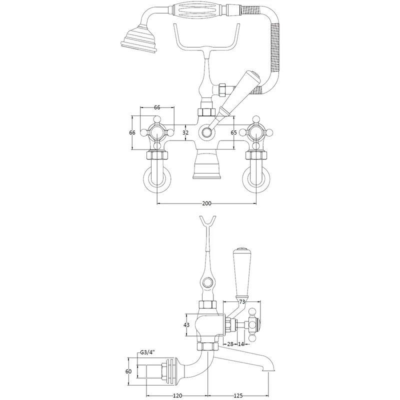 Topaz Black Crosshead Wall Mounted Bath Shower Mixer