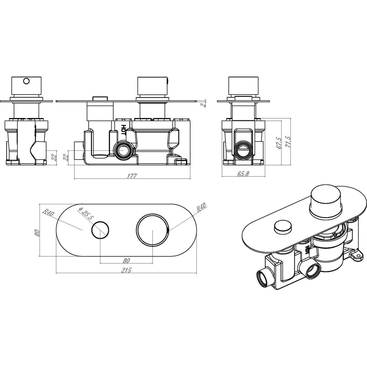Outlets can be operated in isolation or simultaneously (depending on valve, accessories and available water pressure)