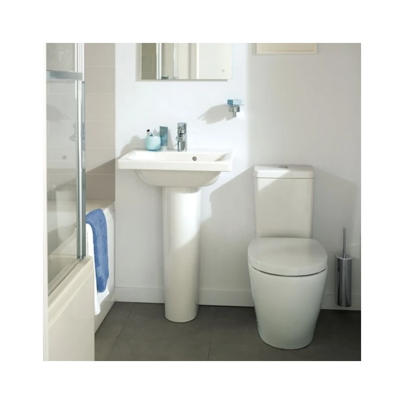 Concept Close Coupled WC Pan, 6/4 Litre Dual Flush Push Button Cistern and Soft Close Toilet Seat