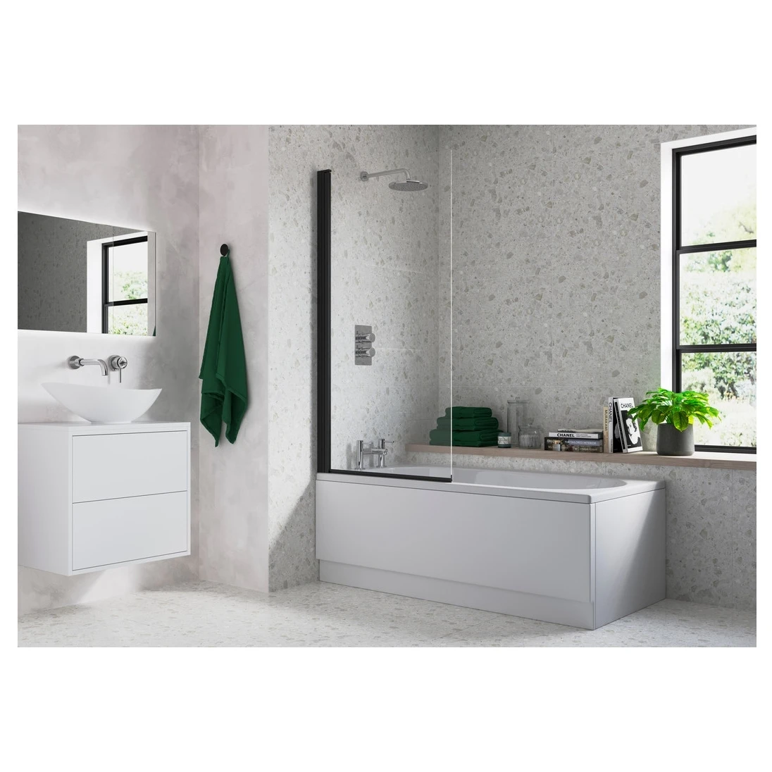 Single Straight Bath Screen – Black