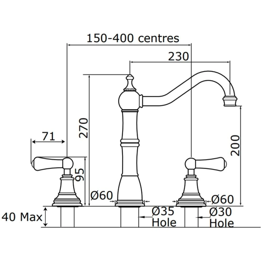 Alsace 3 Hole Kitchen Sink Mixer Tap