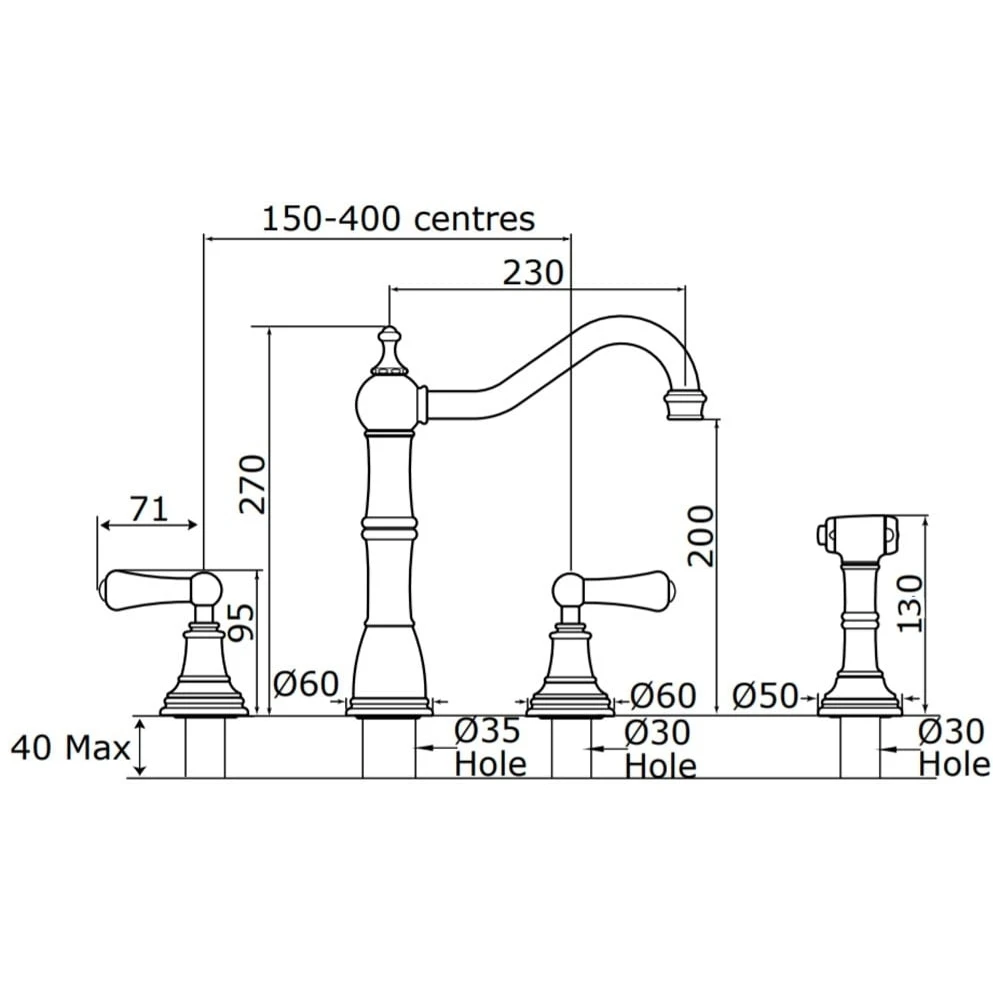 Alsace 3 Hole Kitchen Sink Mixer Tap and Rinse