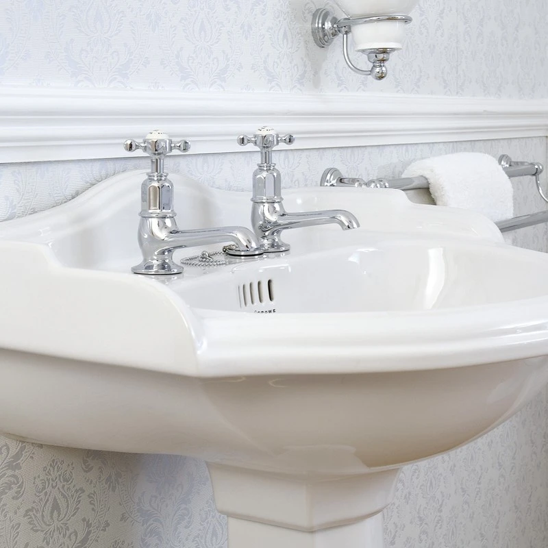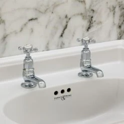 Perrin & Rowe Pair Of Basin Taps With Crosshead Handles Nickel