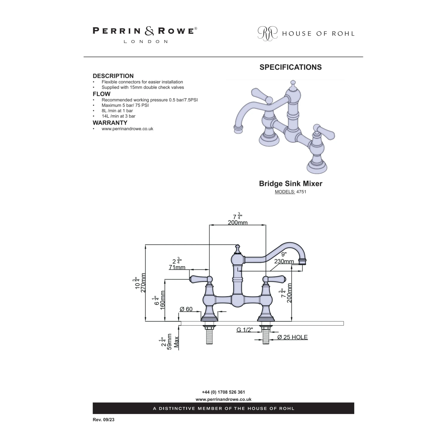 Requires minimum 1.0 bar water pressure