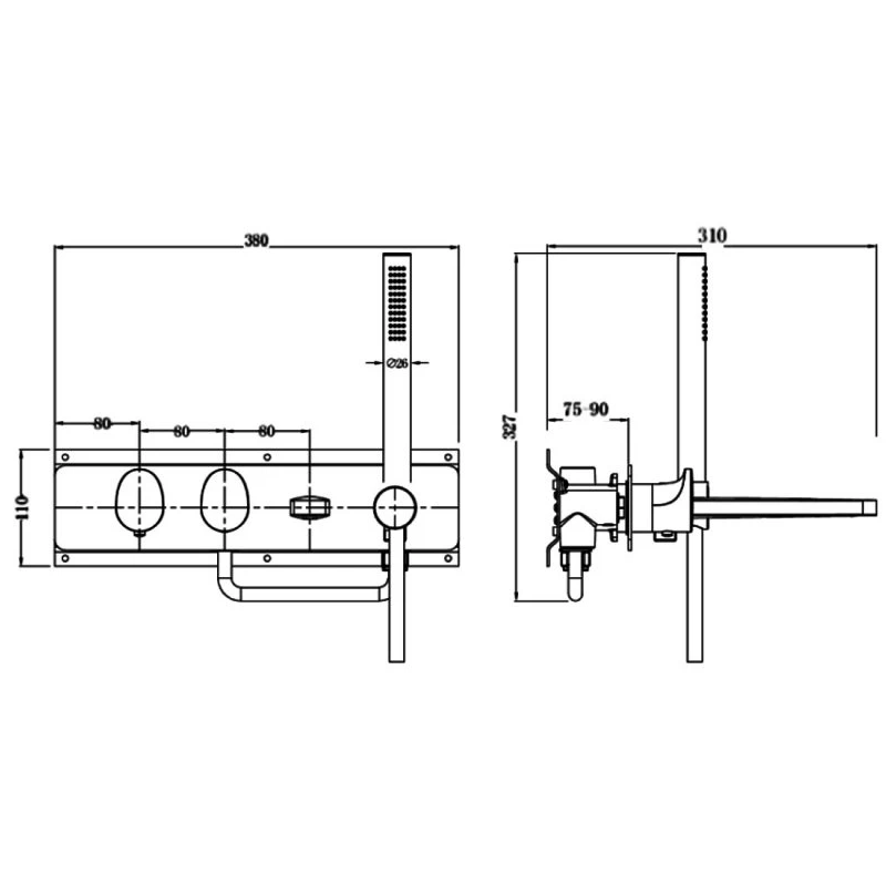 RAK Horizontal Thermostatic Concealed Dual Outlet Shower Valve with Handset and Bath Spout