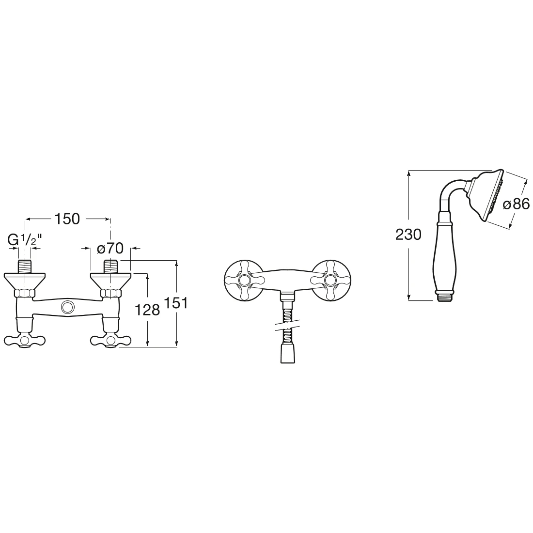 Carmen wall-mounted twin lever shower mixer with accessories