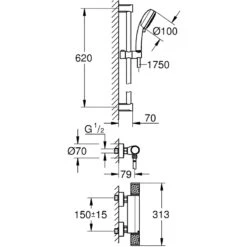 Grohe Grohtherm 1000 Thermostatic Shower Set, 600mm Rail 34820