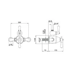 Perrin & Rowe 2 Handle Crosshead Shower Mixer Up Outlet Pewter