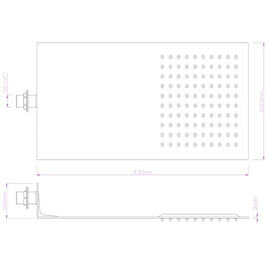 430mm Rectangle Wall Mirrored Shower Head